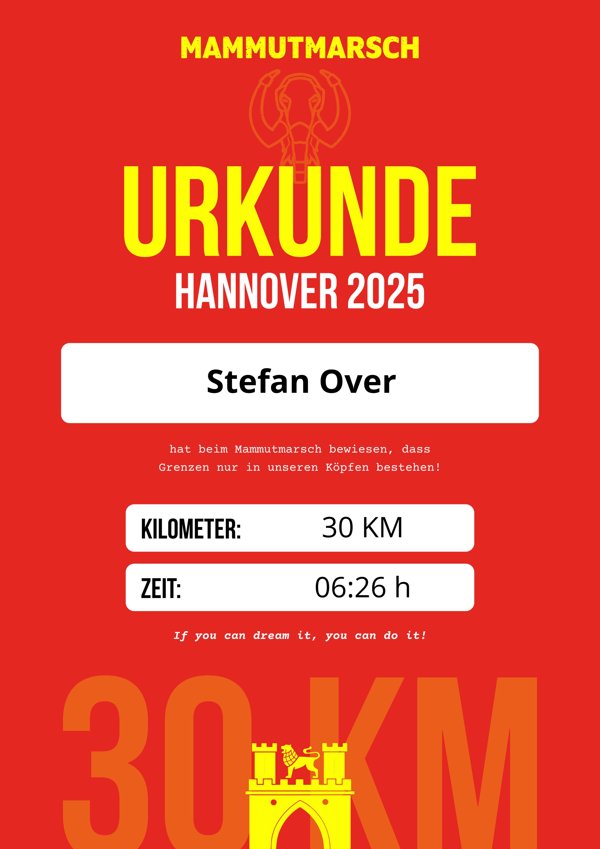 Es ging schon um 6 Uhr per PKW in Richtung Hannover. Das erste Ziel war aber zunächst Lehrte. Nach einer Pause und frisch gestärkt wurde das Rathaus in Hannover angepeilt. Um 11 Uhr fiel auf dem Trammplatz der Startschuss. Es ging zunächst 5 km am Maschsee entlang und auch anschließend war viel Natur angesagt. Nach km 11,4 war im Ricklinger Freibad der erste Verpflegungspunkt. Weiter ging es in Richtung Norden und es ging an der Leine entlang. Anschließend bogen wir in Richtung Osten zu den Herrenhäuser Gärten ab. Nach km 23 war bei den Gärten mit dem Gelände vom SV Odin Hannover der zweite Verpflegungspunkt erreicht. Dann ging es südöstlich in Richtung Rathaus und die letzten 7 km wurden voller Vorfreude auf das Ziel mühelos geschafft. Um 17:26 Uhr war das Ziel erreicht. Genächtigt wurde in Lehrte und am späten Sonntagnachmittag ging's zurück in Richtung Heimat.